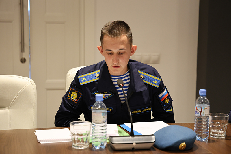 Особое волнение вызвали выступления курсантов Рязанского гвардейского высшего воздушно-десантного командного училища имени генерала армии В. Ф. Маргелова, которые продолжают дело высокого служения своих прадедов, дедов и отцов. Так, Иван Александрович Соколов представил доклад «Военные учебные заведения Рязанской области в годы Великой Отечественной войны». Курсант Илья Алексеевич Белоенко рассказал о преемственности поколений в истории своей семьи – «Великая Отечественная война и Специальная военная операция». Он сообщил о том, что в его казачьем роду воевали все и внесли достойный вклад в Победу в годы Великой Отечественной, служат и сейчас. Тему «Великая Отечественная война в судьбе моей семьи» представил еще один курсант Владислав Алексеевич Зубарев: он поделился сведениями о жизни своих прадедов. Курсант этого же училища Владислав Сергеевич Колышкин раскрыл тему «Пускай я вечно буду неизвестным, но буду частью Вечного огня». Он рассказал, что среди хорошо известных имен и рязанские поэты-фронтовики – Б.И. Жаворонков, Борис Куняев и другие. Он назвал и участников СВО, выпускников училища, погибших на СВО, и прочел стихотворение Никиты Самойлова.