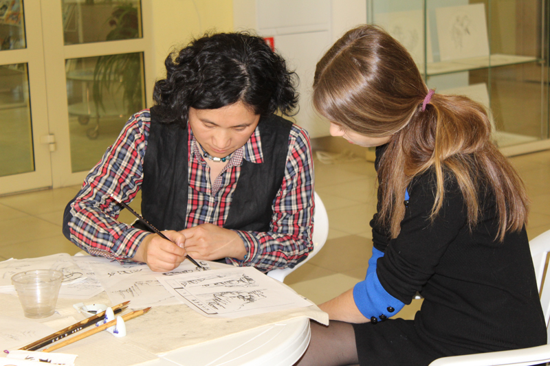 25 сентября под руководством художницы из Китая Бу Нин и рязанского живописца Андрея Наумова в библиотеке состоялся мастер-класс по основам каллиграфии. Встреча прошла в рамках выставки китайской национальной живописи гохуа по многочисленным просьбам её посетителей.