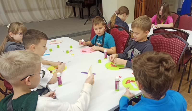 Ребята активно отвечали на вопросы викторины, а затем на мастер-классе с удовольствием делали открытку «А у нас в Рязани – грибы с глазами».