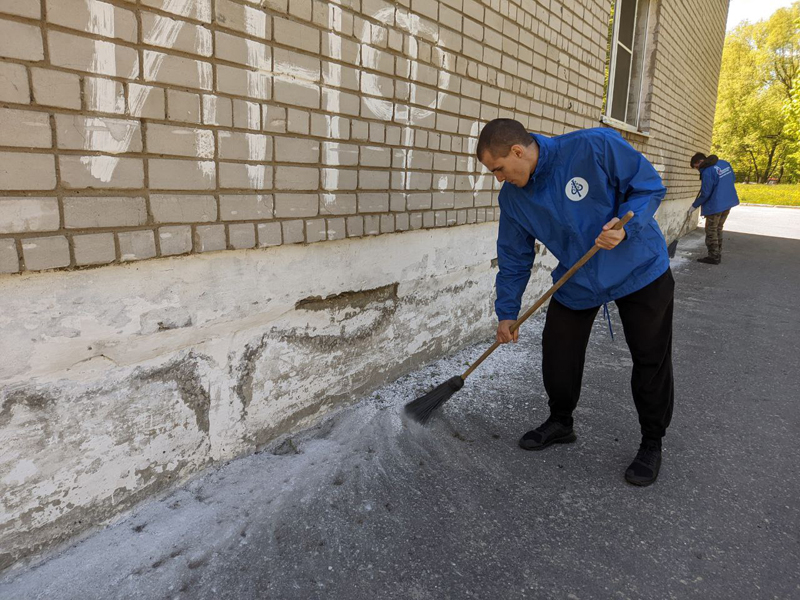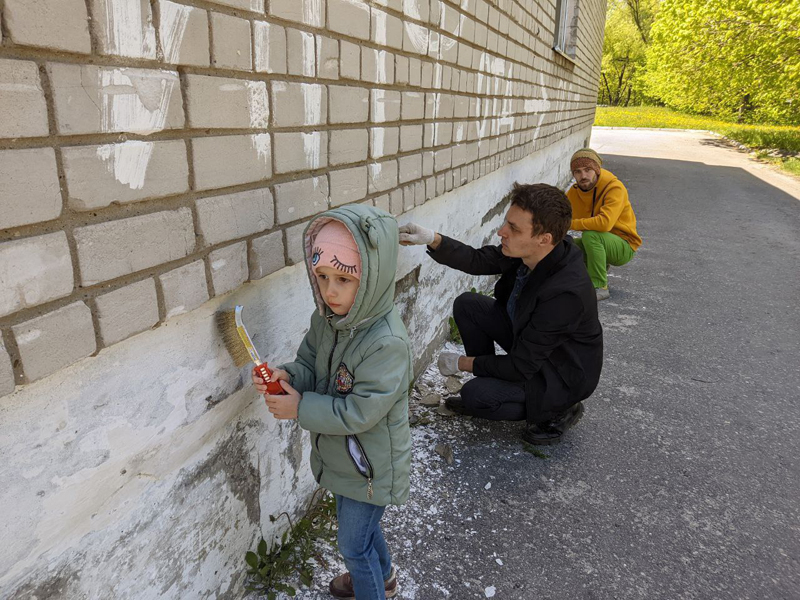 На прошедшем в минувшие выходные арт-субботнике волонтеры культуры подготовили стену детского инфекционного отделения городской клинической больницы N°11 к росписи. Работы ведутся в рамках проекта «Рисунки на здоровье».