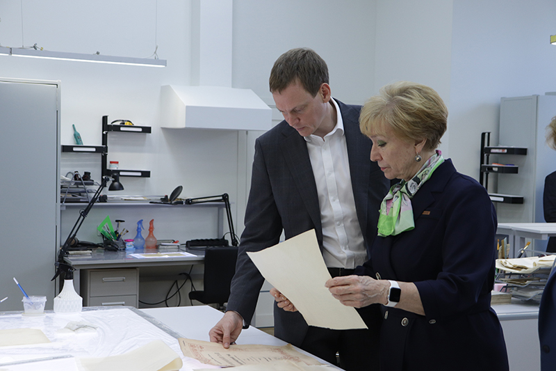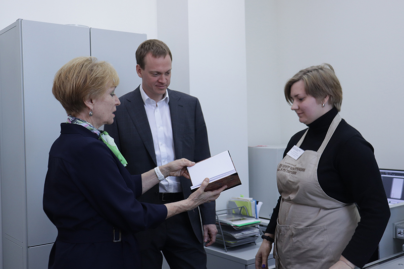 Директор библиотеки имени Горького Наталья Гришина провела экскурсию по центру. Губернатор выразил заинтересованность процессами реставрации. Павел Малков побеседовал с сотрудниками, осмотрел лабораторию, мастерские, обсудил вопросы дальнейшего развития регионального центра.