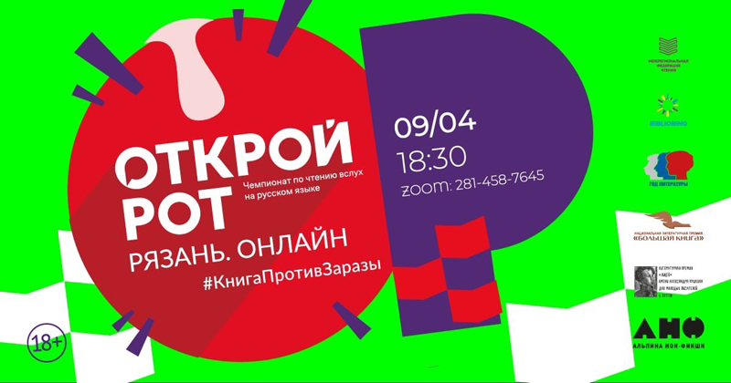 9 апреля в 18.30 пройдет региональный этап интернет-версии чемпионата по чтению вслух на русском языке «Открой рот» на платформе видеоконференций Zoom: 281-458-7645.
