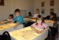 Вместе с художником Мариной Бритовой дети «рисовали» обычным песком персонажей из басен знаменитого классика, оживающих на глазах у зрителей. Мастер-классы по песочной анимации стали настоящим маленьким чудом и для детей, и для взрослых, не оставив никого равнодушным.