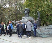 По сложившейся традиции все участники митинга возложили цветы к памятнику поэту.