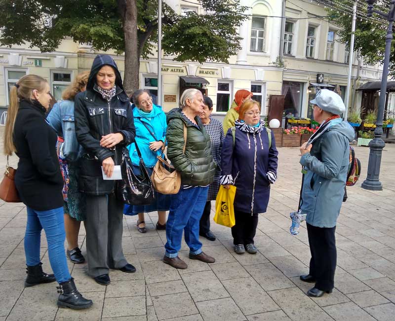 В роли экскурсовода выступила профессор, доктор исторических наук Анна Дмитриевна Попова – автор четырех романов, написанных в жанре исторического детектива: «Солотчинский призрак», «На своем месте, или Новые приключения следователя Железманова», «Одесские каникулы следователя Железманова» и «Фальшивые императрицы и следователь Железманов».