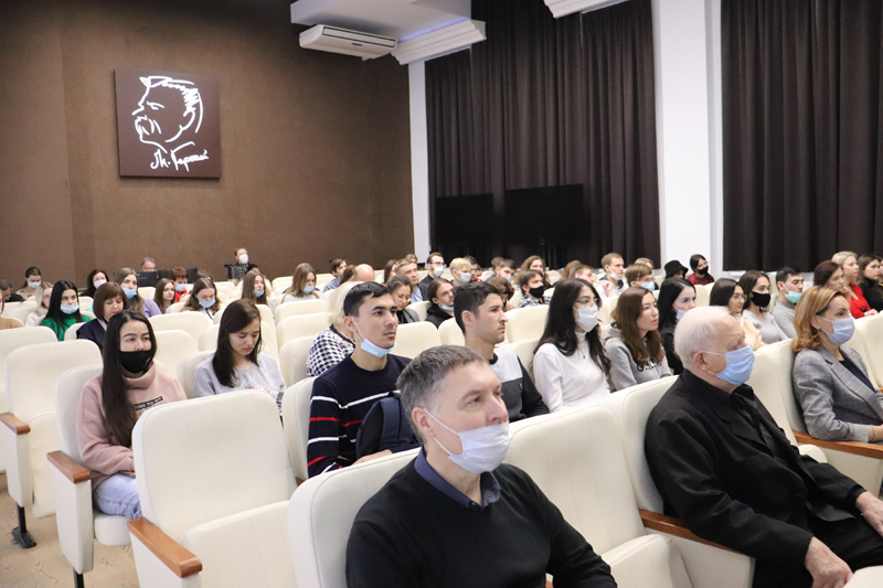 Показ фильма в библиотеке посетили студенты РГУ им. С.А.Есенина, для которых перед началом просмотра была организованна экскурсия по выставкам, проходящим сейчас в библиотеке.