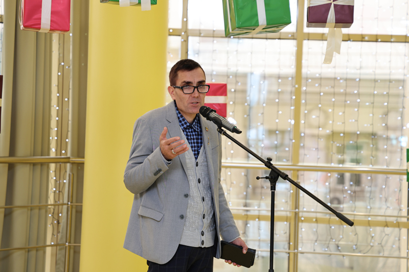Директор Рязанской областной универсальной научной библиотеки имени Горького, председатель Общественной палаты Рязанской области, руководитель регионального отделения Союза женщин России, заслуженный работник культуры РФ, почетный гражданин Рязанской области Наталья Николаевна Гришина поприветствовала присутствующих и рассказала о важности проведенной акции. Наталья Николаевна подчеркнула, что в условиях, когда были утрачены уникальные художественные фонды Северодонецкой галереи искусств, рязанское профессиональное сообщество – учреждения культуры, художники, общественные и благотворительные организации – оперативно и единодушно откликнулось на эту трагедию. В кратчайшие сроки был сформирован и передан в Северодонецк при помощи благотворительного фонда «Форпост» значительный художественный фонд – более ста произведений искусства. Этот вклад имеет не только художественную, но и глубокую гуманитарную и символическую значимость. Произведения стали знаком поддержки, восстановления исторической справедливости. Через искусство они передают любовь, надежду и уверенность в новой Победе и светлом будущем, напоминая о единстве нашего культурного пространства.
