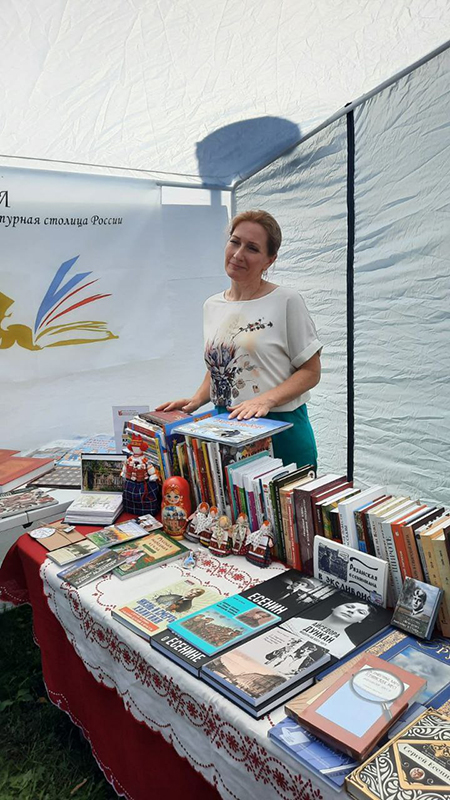 Стенд нашей библиотеки вызвал живой интерес у гостей фестиваля. В центре экспозиции — уникальные издания, посвящённые Сергею Есенину, а также труды по истории традиционного костюма и ремесел Рязанского края. Особое внимание посетителей привлекли книги о наших великих земляках, детские книги, сборники стихов и краеведческие издания, представленные нашей «Книжной лавкой».