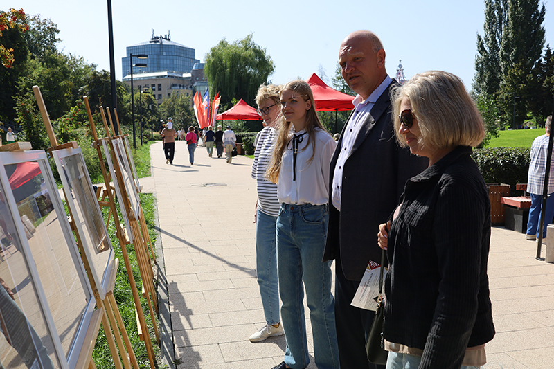 Настоящим украшением праздничной программы стал авторский выставочный проект Дарьи Филимоновой «Деревянное кружево старого города», представленный 30 августа на Лыбедском бульваре. В графических работах художницы ожили образы старинных оконных наличников, ставших неотъемлемой частью культурного кода России. Экспозиция напомнила о богатстве народных традиций и умении мастеров превращать дерево в настоящее искусство. Для гостей была проведена авторская экскурсия, которая помогла увидеть в резных орнаментах не только красоту форм, но и живую историю города. Эта выставка словно связала прошлое и настоящее, даря ощущение преемственности и гордости за уникальное наследие Рязанской земли.