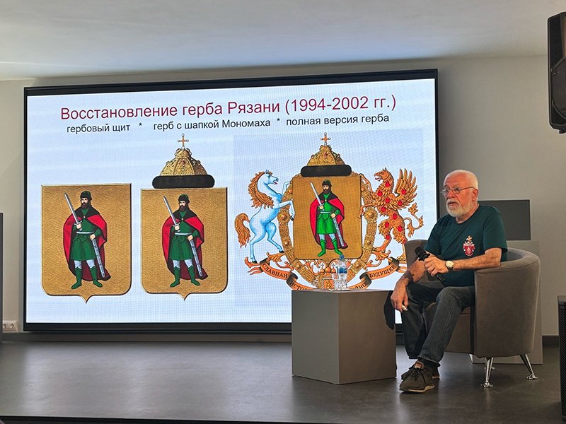 Особым событием стала тематическая лекция «Человек с мечом», которую провёл Михаил Константинович Шелковенко – заслуженный художник Российской Федерации, почётный гражданин города Рязани, один из ведущих специалистов в области геральдики. Участники узнали о правилах и истории создания герба города, о происхождении образа воина с мечом и его символике, а также о процессе появления рязанских символов, ставших важной частью городской жизни. Эта встреча подчеркнула, как традиции и современность переплетаются в культурном облике Рязани, а символы прошлого продолжают вдохновлять новые поколения.