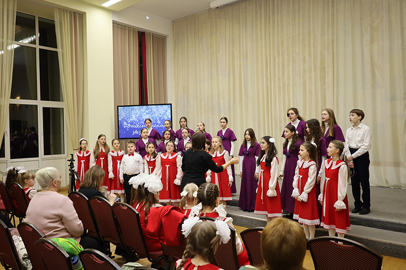 Прозвучали известные произведения русской и зарубежной классики, современных авторов, а также народные песни: «Зимняя пляска» М. Сматека, «Рождественская звезда» Т. Тераевич, «Здравствуй, русская зима» А. Пахмутовой и многие другие.