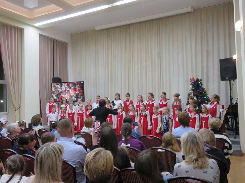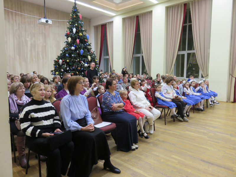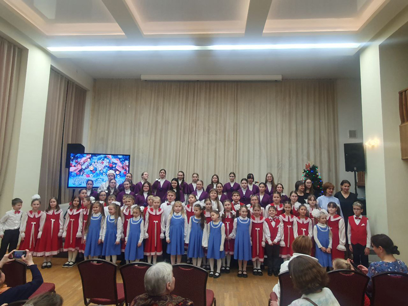 В концертной программе прозвучали известные произведения русской и зарубежной классики, русские народные песни: «Снег идет» Г. Свиридова, «Наступает новый год» С. Плешака, «Рождественская песня» Г. Шайдуловой и многие другие. Не остались без внимания и сольные номера. Новогодние песни исполнили Любовь Медведева, Виктория Паршина, Арина Новикова, Нина Трубицына, Анна Пименова, Екатерина Пименова, Агата Коваленко, Анастасия Гудкова, София Бирюкова, Анастасия Шатохина и Василий Щербаков.