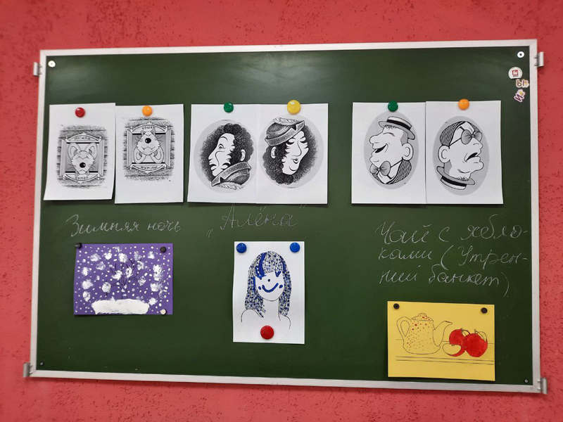 Во время встречи были обнаружены живописные таланты и среди учеников интерната. Картины, над которыми трудились юные художники, были высоко оценены критичной публикой, которая придумала каждой работе свое оригинальное название.