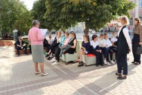 Учащиеся выслушали рассказ об ученом-философе, одном из родоначальников русского космизма Николае Федоровиче Федорове. Работая библиотекарем Румянцевского музея, он познакомился с К.Э. Циолковским. Идеи Константина Эдуардовича оказали на мировоззрение Федорова огромное влияние. Пропагандируя идею международного книгообмена, Николай Федорович считал библиотеку сродни храму, где происходит общение с предками посредством книг.
