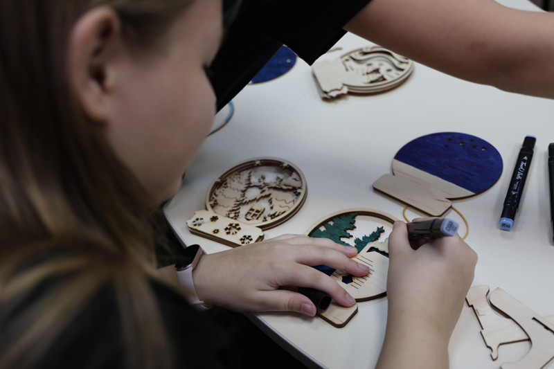 Программа праздника была очень насыщенной: состоялись мастер-классы для детей по росписи елочных шаров, созданию ангелов из макраме, а родители забрали с собой новогоднюю композицию, сделанную своими руками.