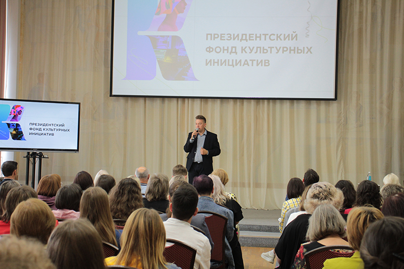 С приветственным словом к участникам мероприятия обратился эксперт РАНХиГС и программы повышения квалификаций управленческих кадров в социальной сфере «PRO Социум» РАНХиГС, федеральный эксперт в сфере креативных индустрий, член проектного офиса при Правительстве Москвы, член постоянно действующей рабочей группы по культуре при Правительстве Российской Федерации; соучредитель Международной ассоциации креативных индустрий Никита Игоревич Фролов. Он отметил, что участие в конкурсе Президентского фонда культурных инициатив – прекрасная возможность реализовать творческие идеи и проекты.