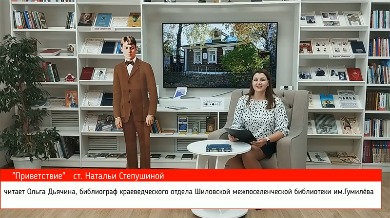 В литературно-поэтическом вечере в онлайн-формате приняла участие и Шиловская межпоселенческая библиотека имени Гумилёва. Специально для этого события шиловская поэтесса Наталья Степушина написала стихотворение, которое прочитала библиограф краеведческого отдела библиотеки Ольга Дьячина, а народный ансамбль «Истоки» Шиловского районного Дворца Культуры исполнил песню на стихи С.А. Есенина «Тебе одной плету венок».