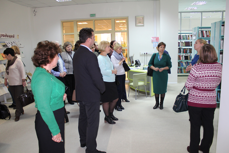 31 октября в библиотеке состоялся педагогичесокий совет МБОУ «Школа № 60» «Духовно-нравственное воспитание как ключевое требование ФГОС и ООО». Его открыла директор учреждения Наталья Николаевна Гришина. В ходе экскурсии по залам и экспозициям было рассказано о возможностях библиотеки как главного информационного, образовательного и методического центра рязанского региона, о том, что библиотека стремится быть центром культурного притяжения, местом просвещенного досуга и средоточием общественной жизни города и области.
