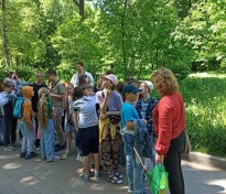 Сегодня сотрудники библиотеки имени Горького провели экскурсию для ребят из школьного лагеря. Дети познакомились с историей парка, прошли по его аллеям, послушали пение птиц, покормили уток, а также измерили, сколько человек может обхватить ствол многолетнего дуба. Выдалась у ребят и свободная минутка для отдыха, когда они смогли поиграть в активные игры и перекусить.