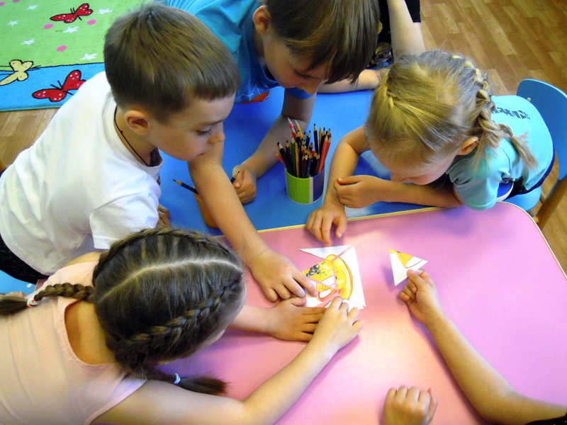 Ребята, просмотрев иллюстрации к сказке, захотели услышать истории о появлении посуды и вызвались помочь горю Федоры. Затем дети собирали пазлы и отгадывали загадки. В заключение каждый попробовал раскрасить для себя чайную пару на память.