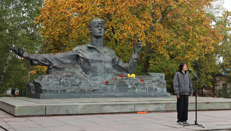 По сложившейся традиции все участники митинга возложили цветы к памятнику поэту.