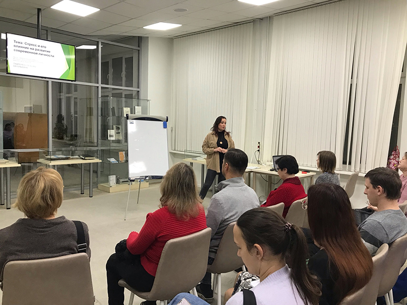 В библиотеке имени Горького 21 ноября прошла очередная встреча в рамках социального проекта – цикла интерактивных лекций «Психологическая поддержка семьи в условиях повышенной напряженности, мировой нестабильности и перемен». Лекцию «Стресс и его влияние на развитие современной личности. Стресс менеджмент» прочитала психолог, семейный психолог, гештальт-консультант, психодраматист Любовь Лавренева.