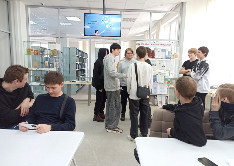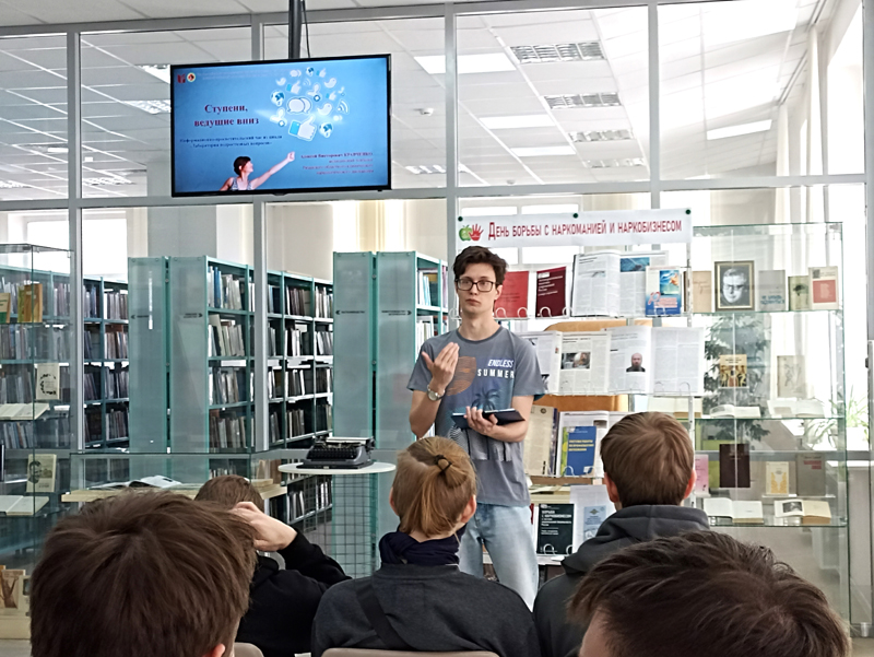 На встрече в библиотеке медицинский психолог Рязанского областного клинического наркологического диспансера Алексей Викторович Кравченко предложил командам студентов поучаствовать в игре, в ходе которой необходимо было разобраться в предложенной ситуации и принять верное решение. Первокурсники выступили в роли юристов, сценаристов и журналистов.