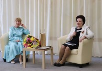 С приветственным словом выступил министр культуры Рязанской области Виталий Попов. Он тепло поздравил Раису Николаевну с юбилеем, и поблагодарил её за большой вклад в развитие литературы в нашем регионе и высокую ноту патриотизма в творчестве. По словам Виталия Юрьевича, Раиса Купавская свято хранит традиции русской прозы и поэзии, основанные на идеалах нравственности.