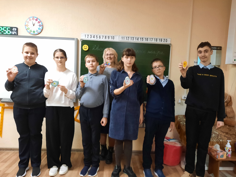 Ребята учатся в школе уже шестой год и бумажные открытки для своих любимых мам делали не один раз. В этом году решено было усложнить задачу и сделать не просто открытку, а открытку-магнит с изображением цветов, которая бы стала полноценным подарком близкому человеку. Деревянные заготовки из березовых спилов мальчишки и девчонки раскрасили белыми и цветными ромашками с помощью кисточек, ватных палочек и акриловых красок.