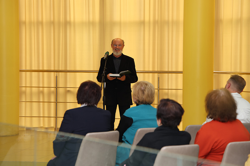 Сын поэта-фронтовика Бориса Ивановича Жаворонкова Михаил Борисович прочитал несколько строк из поэмы отца «Озерный огонь». Рукопись этого произведения из семейного архива нашего земляка представлена в выставочном проекте.