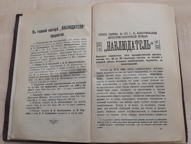 Спустя 140 лет со времени основания журнала читателям предоставляется возможность познакомиться с «Наблюдателем» и почувствовать дух того времени. Знакомство с журналом будет интересно всем, кто интересуется историей литературы, издательским делом и журналистикой.