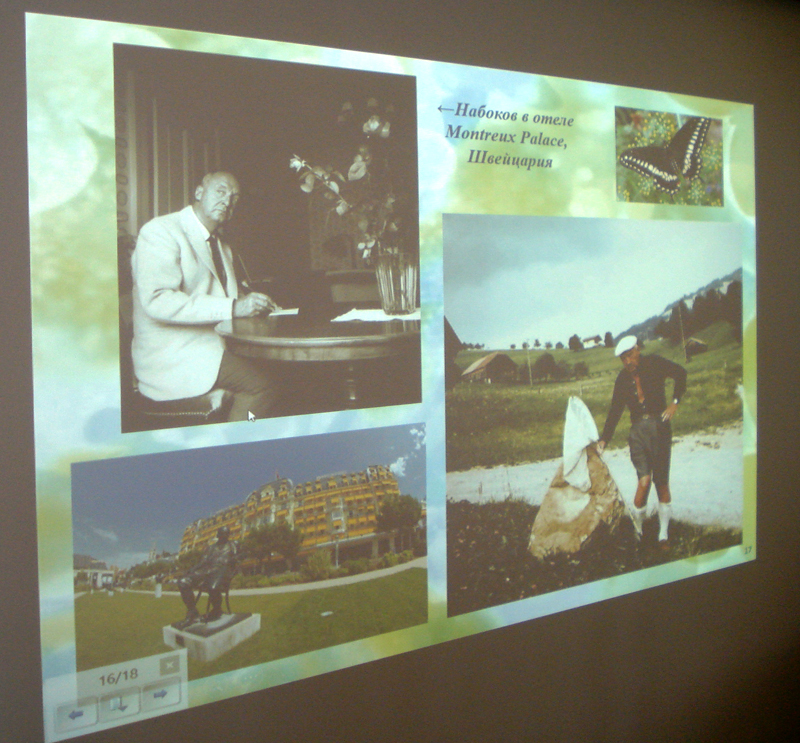 Для участников встречи прозвучали стихотворения В.Набокова разных лет. Иллюстрацией рассказа стали презентации и отрывки документальных и художественных фильмов. Медиаматериалы помогли создать портрет писателя, талантливого человека, не примирившегося с потерей Родины.