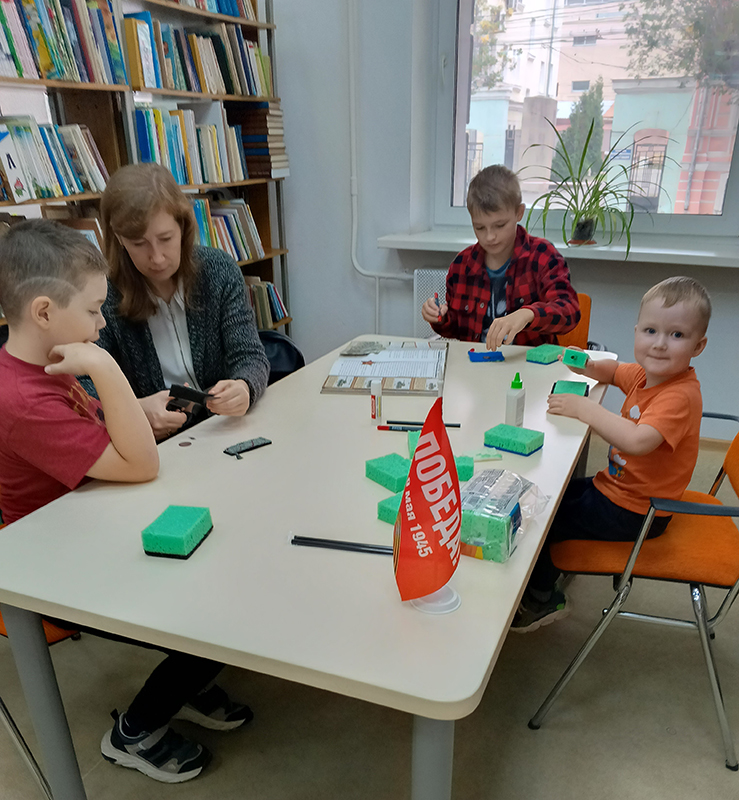 В клубе выходного дня «Домовёнок» ребята учатся мастерить поделки своими руками. Сегодня, в рамках презентации культурно-просветительских проектов «Для семьи, для страны, для будущего», участники клуба создали из губки необычную объёмную поделку — танк Победы. Работа с новыми материалами и инструментами помогает детям раскрывать творческий потенциал, становиться более усидчивыми, внимательными и аккуратными.