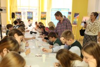 Сегодня в Гербовом зале библиотеки имени Горького состоялся мастер-класс «Ветвь жизни» с элементами арт-терапии для ребят из Православной гимназии во имя святителя Василия Рязанского. Мероприятие провел автор выставки картин «Творчество без рук» Евгений Викторович Коробских-Кудашов.