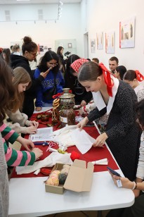 Иностранные студенты приняли участие в мастер-классах, подготовленных студентами РГУ имени С.А. Есенина. Они приобщались к русской культуре и мастерили куклы-обереги, знакомились с китайскими иероглифами, писали добрые слова и пожелания на армянском языке. Гости смогли также попробовать традиционные русские блины, армянские сладости, выпечку и китайские национальные блюда. Настоящим подарком для всех собравшихся стал творческий концерт.