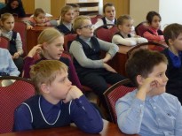 Для ребят было разыграно кукольное представление с участием озорного Петрушки и других сказочных персонажей. Все зрители были вовлечены в игровое действо, активно разгадывали загадки, отвечали на вопросы, связанные с историей театра, сумели проявить свои актерские способности, перевоплощаясь в предлагаемые образы. Посмотрев фрагмент из документального фильма о рязанском кукольном театре, наши юные гости узнали, что для настоящего художника кукла – это почти живое существо, ведь для того, чтобы создать куклу, нужно придумать и воплотить в ее внешности характер.