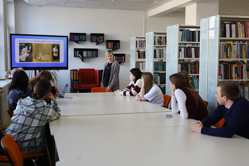 25 марта для студентов Рязанского технологического колледжа сотрудники Рязанской областной универсальной научной библиотеки имени Горького провели литературный маршрут «Толстой. Вне времени». Мероприятие было организовано в рамках программы «Пушкинская карта».