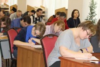 На семи площадках библиотеки многочисленные желающие проверить свою грамотность написали диктант под диктовку филологов. В акции приняли участие 200 человек разного возраста, профессий и интересов. Диктант объединил представителей бизнеса, власти, студентов, курсантов, школьников, их родителей, бабушек и дедушек. Написали под диктовку текст ректор РИРО Андрей Кашаев, заместитель министра образования Рязанской области Александр Кирьянов.