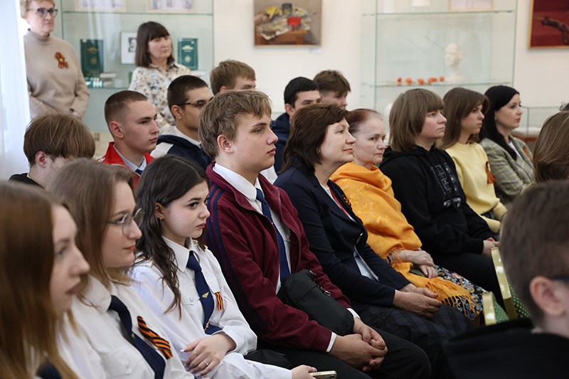 Директор библиотеки, председатель Общественной палаты Рязанской области, заслуженный работник культуры РФ Наталья Николаевна Гришина в своем приветственном слове отметила, что в России нет ни одной семьи, которой не коснулись бы страшные события военных лет. Очевидцами этих событий были и художник Анатолий Лыкин, и писатель Борис Жаворонков. Наталья Николаевна была лично знакома с Борисом Ивановичем и рассказала рязанским студентам, каким интересным, неравнодушным человеком он был.