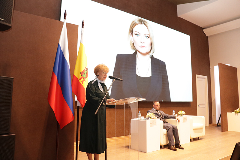Участникам центральной экспертной сессии было зачитано обращение Министра культуры Российской Федерации Ольги Борисовны Любимовой. От лица Губернатора Рязанской области выступила с приветствием исполняющая обязанности министра культуры области Елена Анатольевна Васильева, подчеркнув лидирующие позиции нашего региона по реализации национального проекта «Культура» в Центральном федеральном округе.