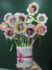 Ежегодно в первых числах октября все школьники дарят своим наставникам цветы, сувениры, поздравительные открытки. В этом году мы решили объединить традиционные подарки и сделать для любимого учителя цветочный букет, «посадив» в самодельный горшок фоторамки в виде цветов.