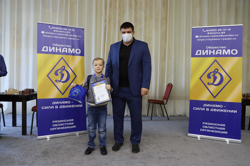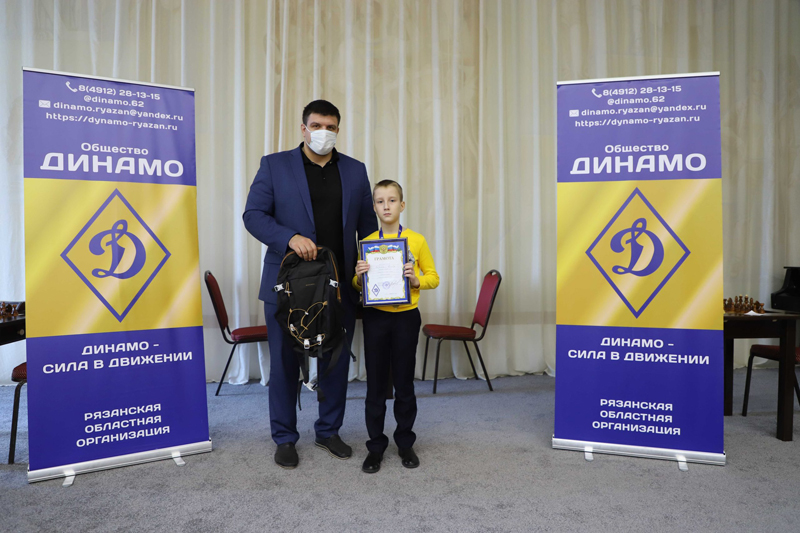 По окончании Турнира все участники получили от Рязанской областной организации Общества «Динамо» сладкие призы, победители, призеры и победители в номинациях были награждены медалями, грамотами и ценными подарками, которые вручали заместитель председателя РОО Общества «Динамо» Андрей Волков и почетный гость турнира мастер ФИДЕ Андрей Соколов.