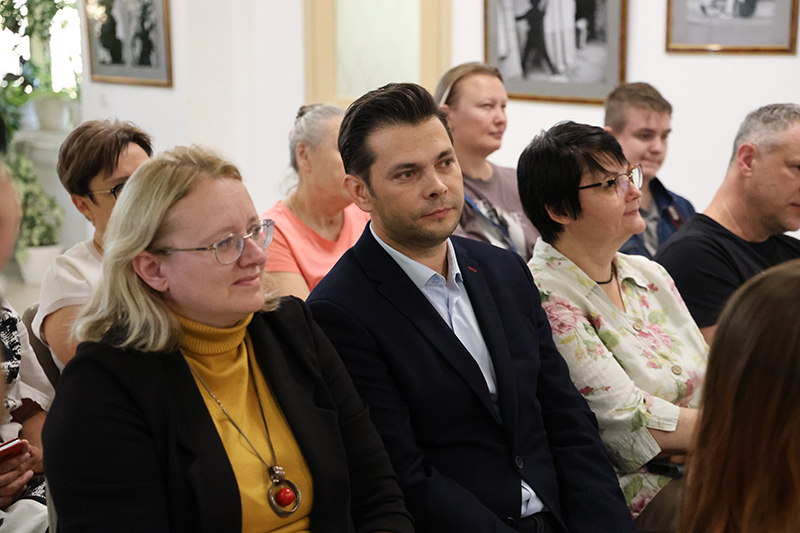 На встрече присутствовали: начальник управления культуры и туризма администрации Спасского района Сергей Алексеевич Кочетков; начальник сектора молодежной политики Управления образования Спасского района Елена Сергеевна Батова; почетный гражданин города Рязани Раиса Алексеевна Лысенина, представители творческой интеллигенции, читатели и сотрудники библиотеки, студенты Рязанского государственного радиотехнического университета имени В.Ф. Уткина, обучающиеся центра «Школа креативных индустрий» Рязанской областной универсальной научной библиотеки имени Горького.