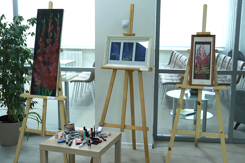 Уникальная выставка картин, созданных из бывшей в употреблении декоративной косметики, была подготовлена волонтерами, художниками и дизайнерами.