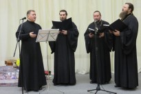 Второй блок мероприятия включал в себя духовные песнопения и канты. Светло и возвышенно лились прекрасные мелодии в исполнении юбиляра (соло) и квартета священнослужителей (под управлением Александра Костенко): протоиерей Димитрий Челноков, иерей Владимир Любимский и протодиакон Анатолий Ковшиков. Они исполнили произведения: «Белый храм», «Молитва св. Николая», «Малое славословие», «Песнь о матери», «Ромашка белая», «Вера, Надежда, Любовь»). Завершилась программа исполнением «Многолетия».