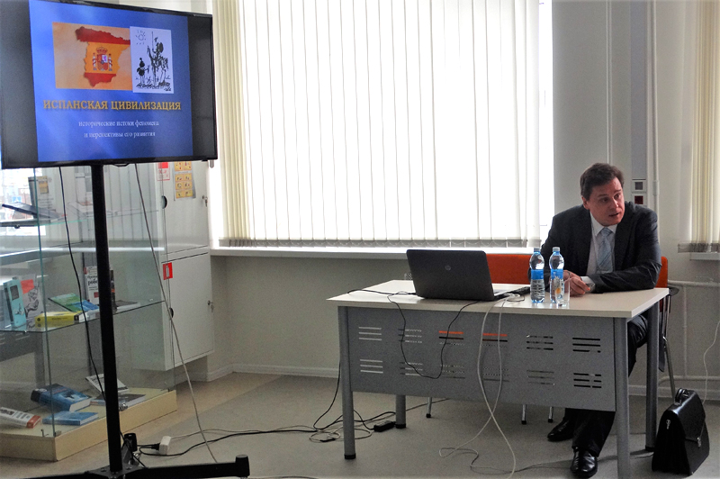 Учащиеся рязанской студии испанского языка «¡Hasta la Vista!» погрузились в испанскую историю в стенах библиотеки имени Горького. Лекция кандидата исторических наук, дипломата Михаила Анатольевича Российского была посвящена ключевым событиям в истории Испании с момента ее формирования до наших дней, а также ее дипломатическим отношениям с Европейским и Латиноамериканским сообществами.