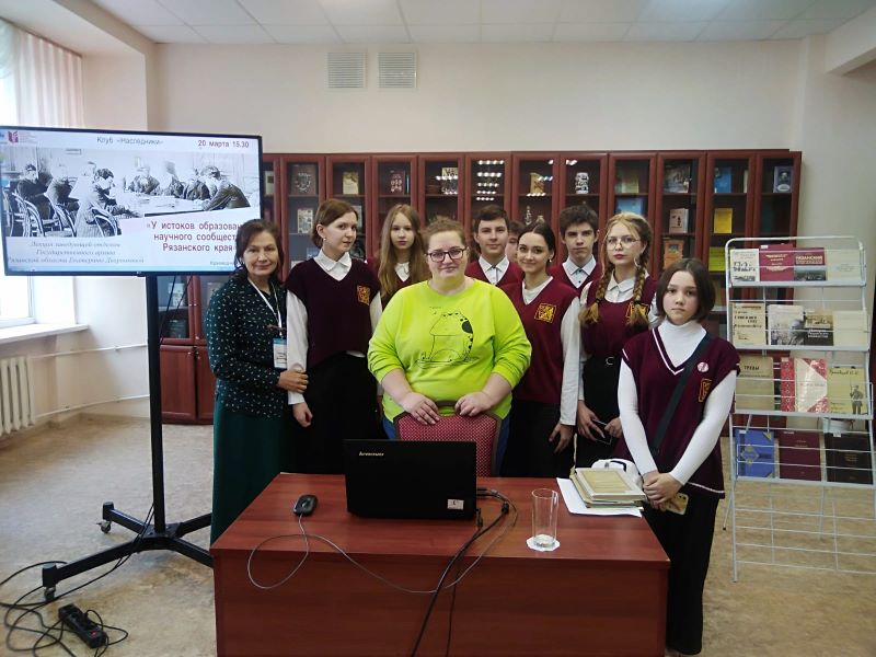 20 марта в краеведческом отделе библиотеки имени Горького состоялось одно из интереснейших, по мнению участников, мероприятий для членов молодежного клуба краеведов «Наследники». Учащиеся пяти школ – 11, 30, 47, 50 и 65-й – встретились с заведующей отделом Государственного архива Рязанской области Екатериной Викторовной Дворниковой. Мероприятие было приурочено к 140-летию со дня создания Рязанской ученой архивной комиссии (РУАК).