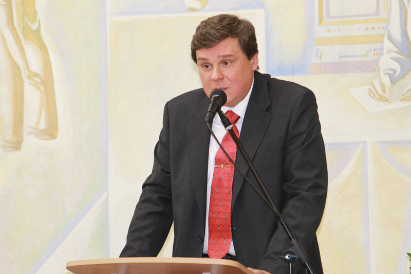 Затем слово было предоставлено авторам. Первым выступил Михаил Анатольевич Российский, кандидат исторических наук, старший советник посольства РФ в Королевстве Испания, автор публикаций по истории русского зарубежья, Русско-японской и Первой мировой войн. Рассказывая о совместной работе, он в шутку заметил: «Данное издание является продуктом современных информационных технологий. Общение велось по линии Мадрид – Москва – Скопин». Касаясь конкретики, Михаил Анатольевич обратил внимание участников презентации на то, что помимо истории «коренных» населенных пунктов дореволюционного Скопинского уезда Рязанской губернии, большое внимание в книгах уделено селениям, входившим до административных реформ советского времени в состав Михайловского и Ряжского уездов, а также 11 селам Епифановского уезда Тульской губернии, которые со временем стали рязанскими.