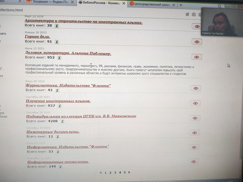 Наталья Михайловна Юрченко рассказала об электронно-библиотечной системе «Библиороссика». ЭБС предназначена для преподавателей и студентов и представляет собой коллекцию актуальной научной и учебной литературы по гуманитарным, техническим и естественным наукам. Также она сообщила о новых поступлениях и о работе в кабинете библиотекаря.