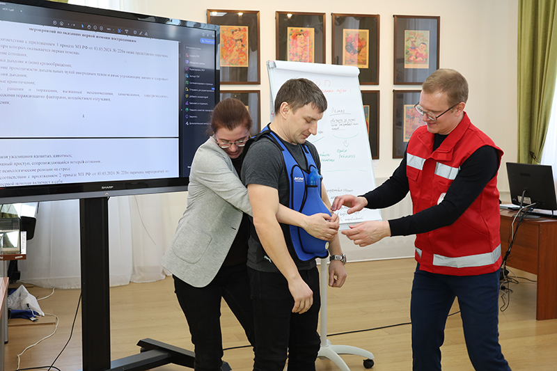 Сотрудники отработали с применением специальных тренажеров и манекенов практические навыки по проведению сердечно-легочной реанимации (СЛР), научились правильно оказывать первую помощь пострадавшим.